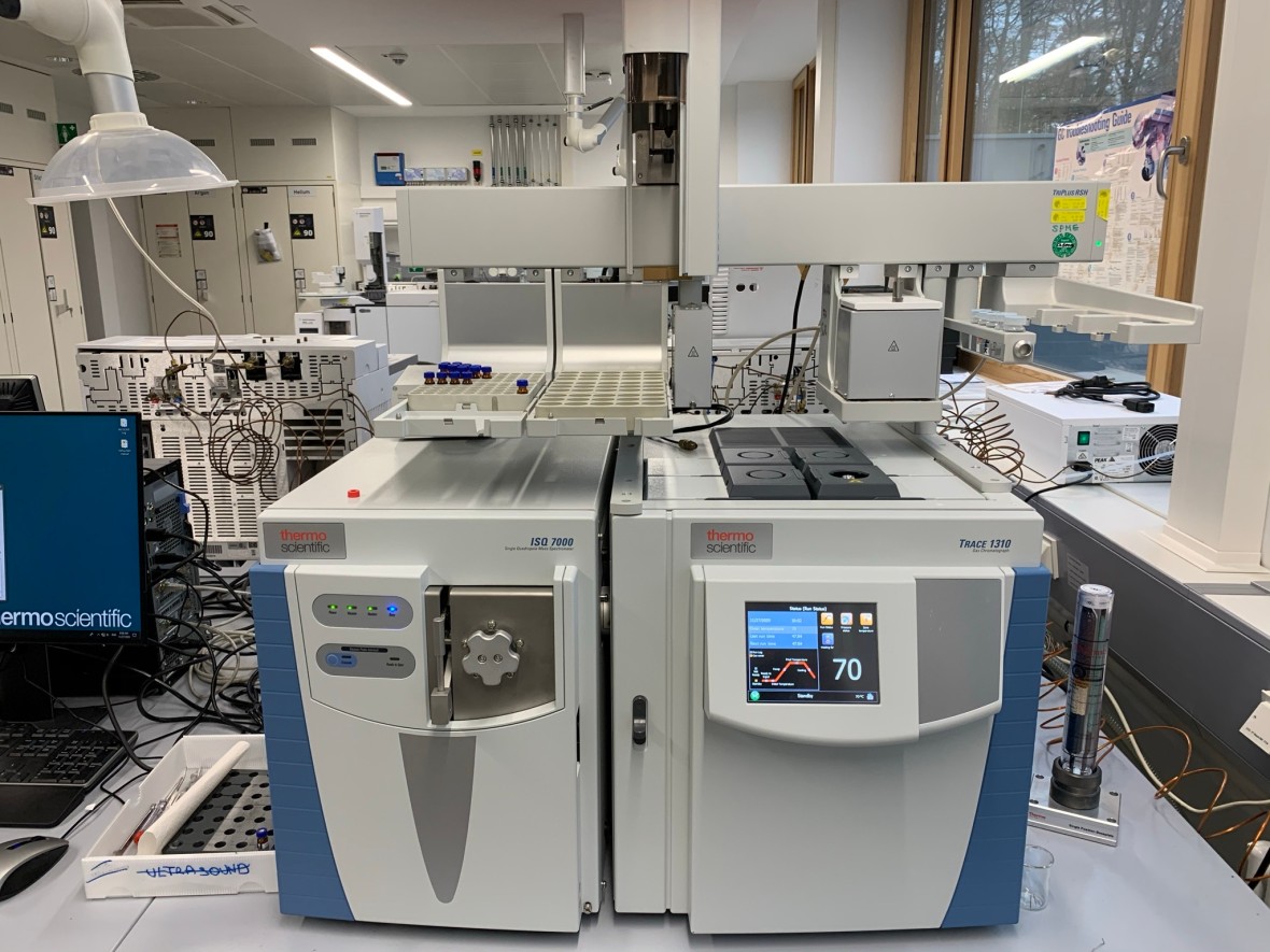 In the environment, microplastics and tire wear particles may release a number of chemical additives (e.g., plasticizers, flame-retardants). Those hazardous organic compounds, thus, cause adverse impacts on terrestrial and aquatic ecosystem. Using our Py-GC/MS, we can investigate not only the type and amount of the microplastics but also hazardous organic compounds associating to the microplastics. Furthermore, we use compound-specific stable isotope analysis (CSIA) for the investigation if the origin or the degradation mechanism of the compound. The stable isotope composition of a compound is used as a specific fingerprint. For instance, hydrogen isotope composition of agricultural products like olive oil or wine can be used to estimate the geographical origin of the products. Our GC-C-IRMS is capable of implementing stable hydrogen (δ2H), carbon (δ13C) and oxygen (δ18O) isotope analyses. We can also analyze chlorine (δ37Cl) and bromine (δ81Br) isotopic compositions of halogenated pollutants in the environment to investigate their fate and transport.